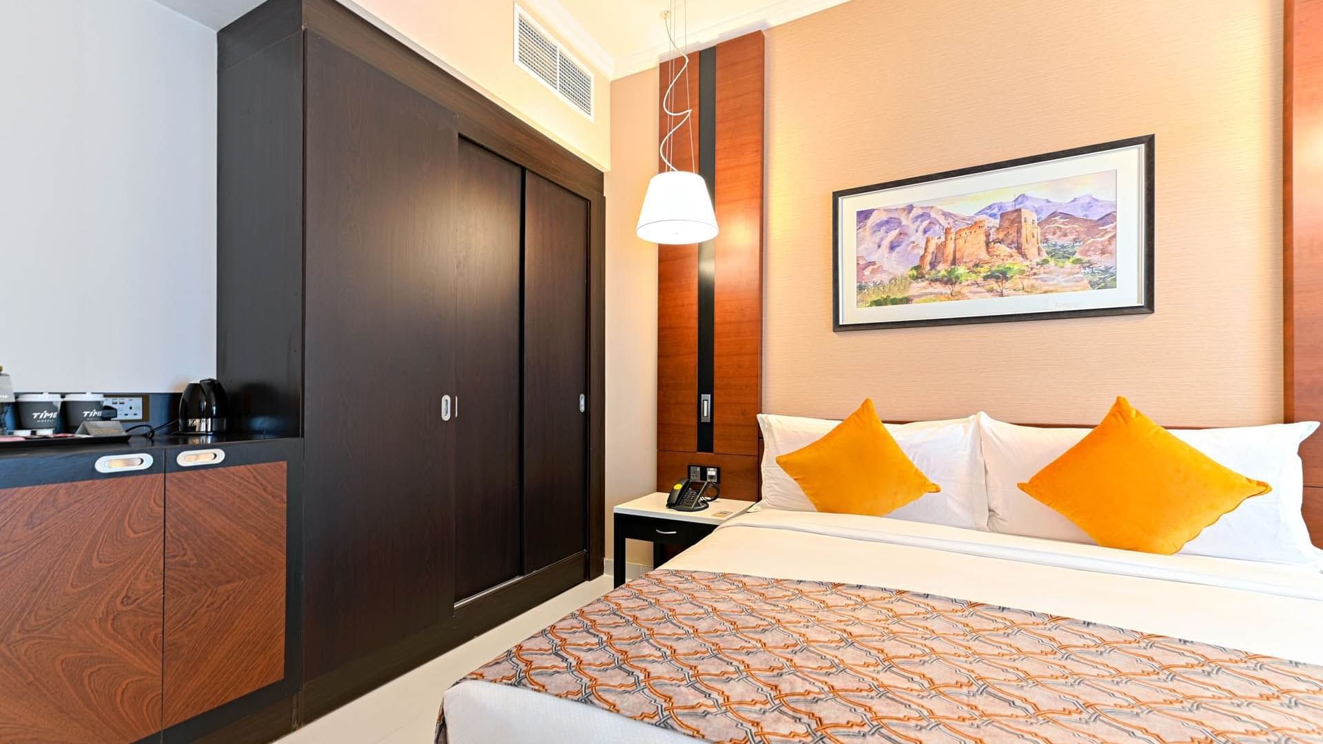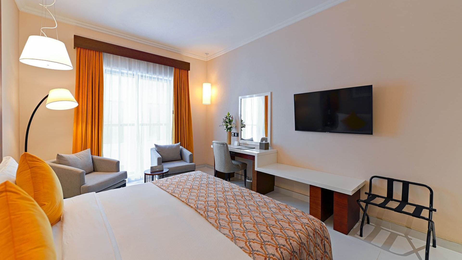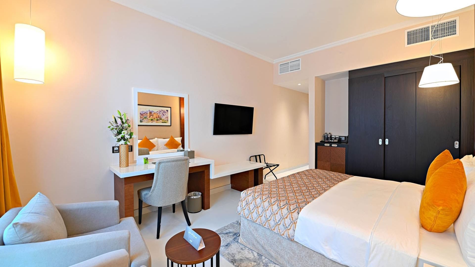 A comfortable and tasteful choice of rooms. The Deluxe King Room offers 32 m² of sophisticated accommodation equipped with a comfortable king bed, private bathroom, complimentary WIFI, coffee & tea making facilities, electronic safety box and 49” smart TV.