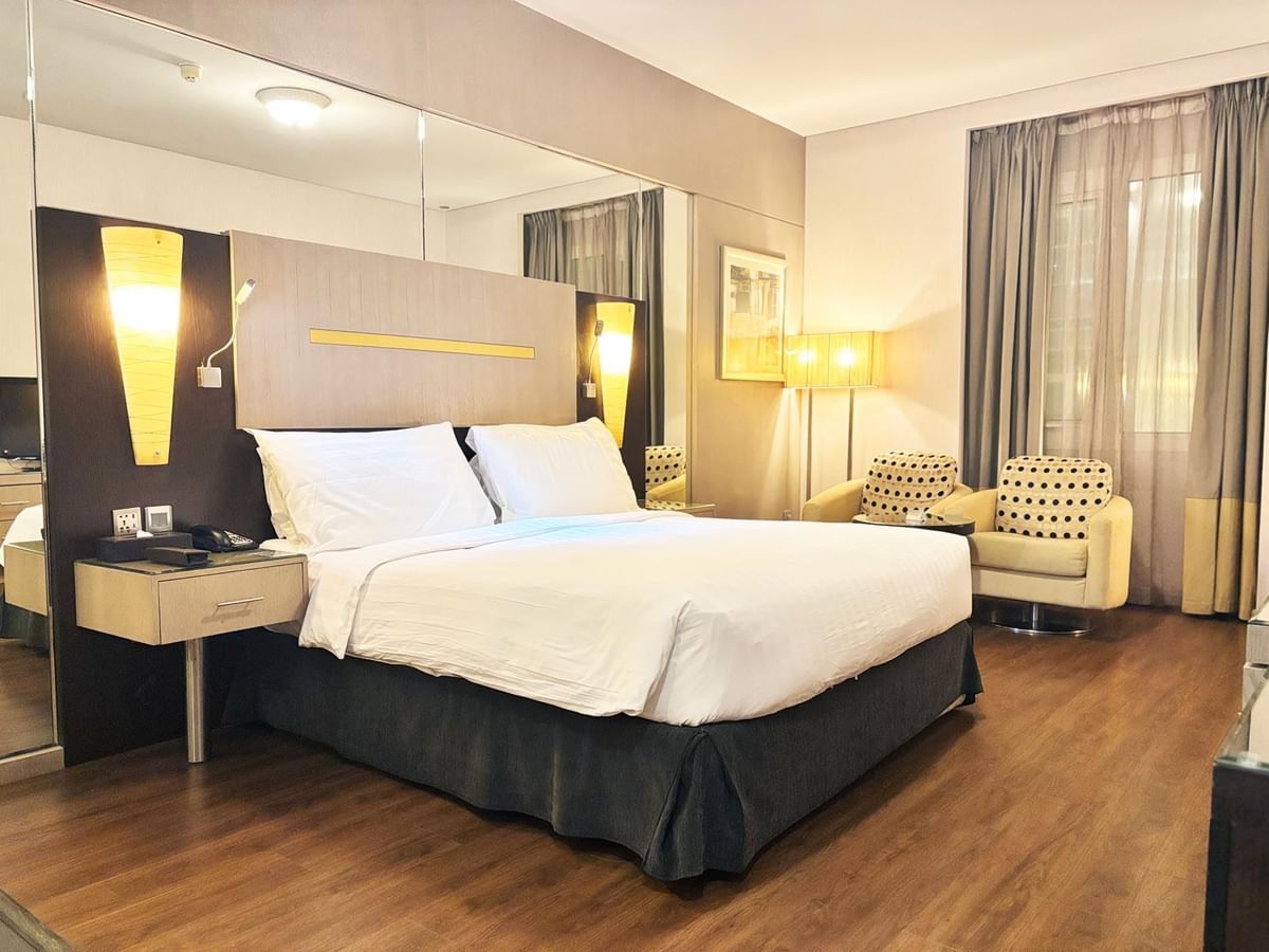 Our Deluxe Room offers views of either the city or our peaceful atrium area, a welcoming touch for enjoying getaways or business travel in the UAE.