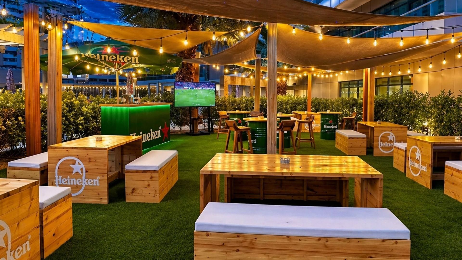 Step into our vibrant Beer Garden and enjoy the perfect outdoor atmosphere under the lights. Sip on chilled drinks, relax in cozy seating, and soak up the music in a lively setting—ideal for memorable evenings with friends and colleagues.