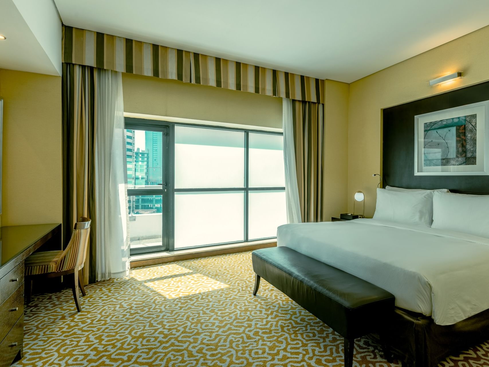 TIME Oak Hotel & Suites offers 161 spacious suites, ranging from 81 to 213 square meters, designed for both business and leisure travelers. Each suite features premium beds, a fully equipped kitchen with washer/dryer, and modern amenities like 24-hour in-room dining, a 55-inch LCD TV, and free Wi-Fi.