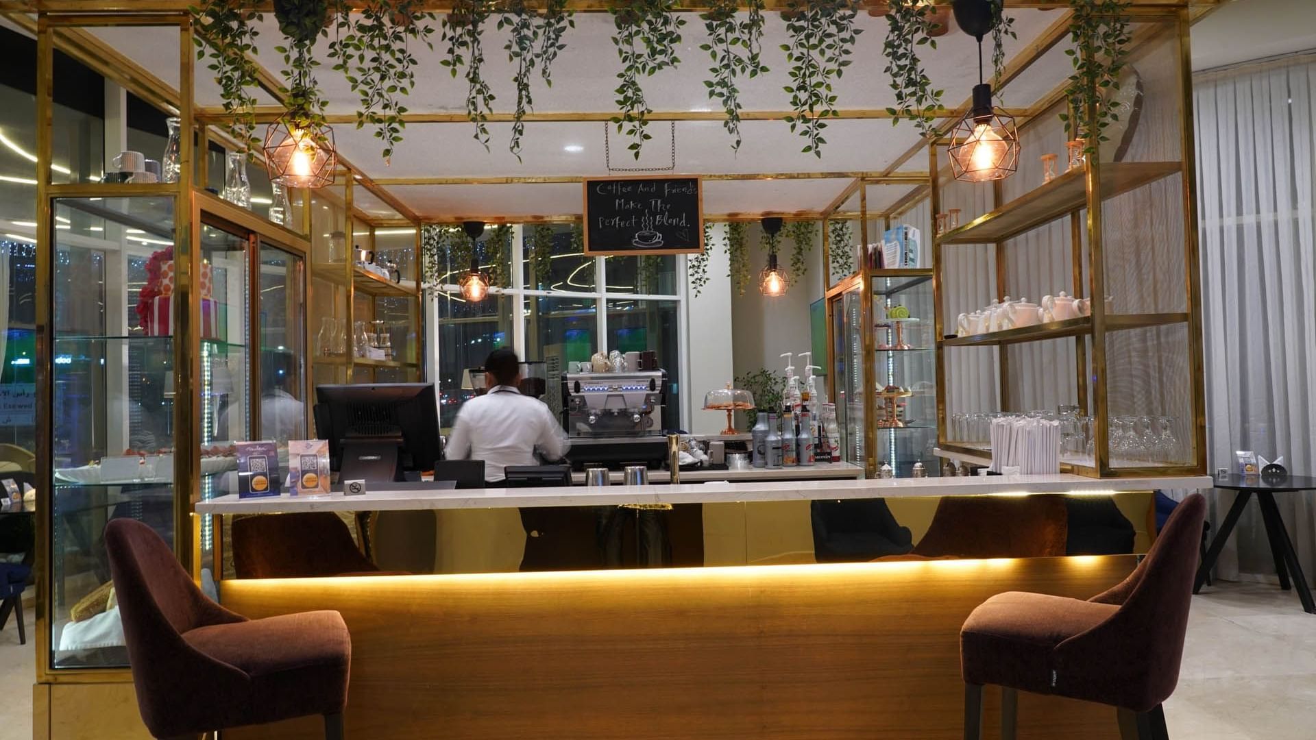 "Breeze Cafe", a stylish lobby lounge in Al Wakrah offering a wide range of coffee, specialty drinks, and freshly made desserts.