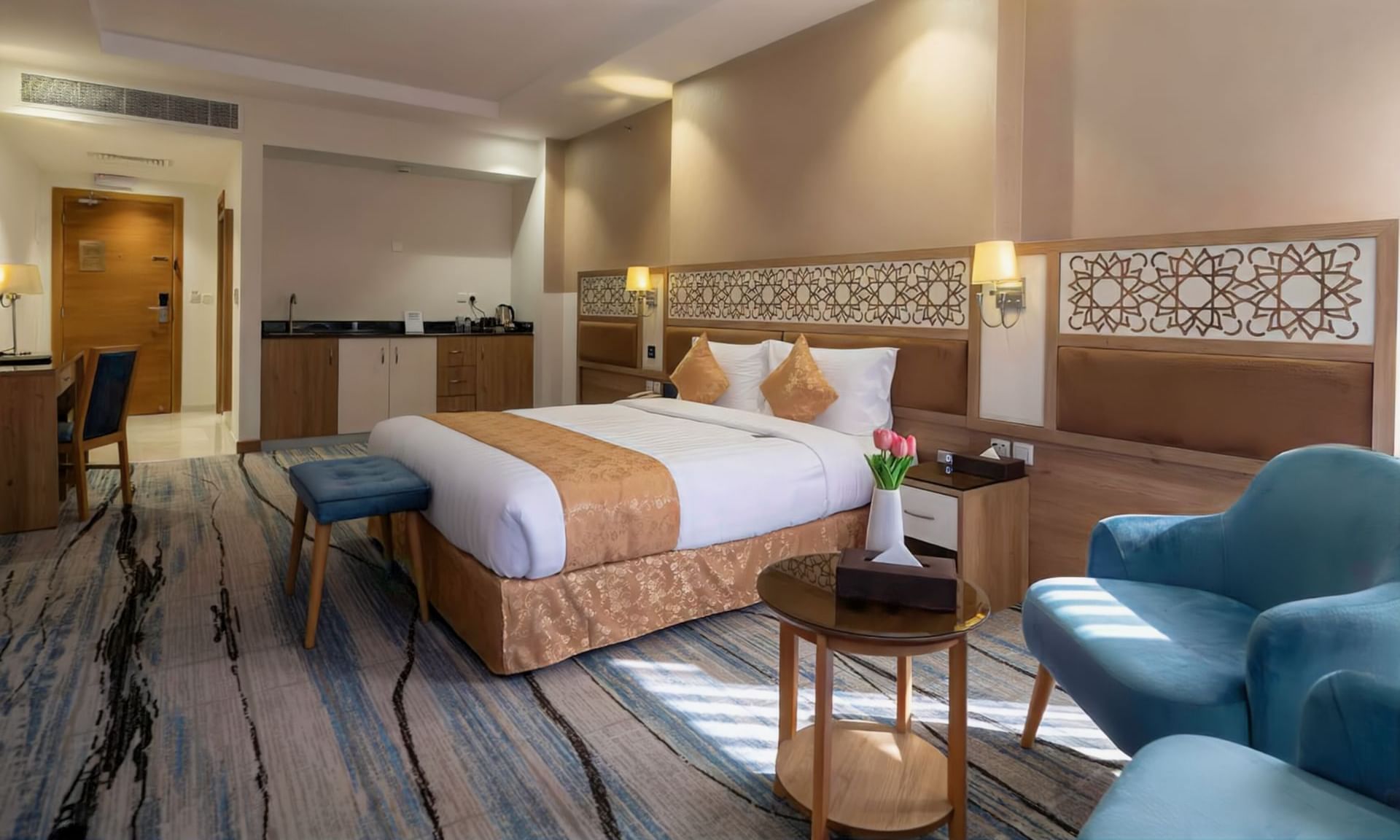 Welcome to TIME Ruba Hotel & Suites, where luxury meets comfort in our offering of 770 well-appointed rooms in Makkah. Among them, we present 461 Deluxe Quadruple rooms, 35 Deluxe Triplet rooms, 103 Deluxe King rooms, and 106 Deluxe Twin Rooms. Each room is meticulously designed with both comfort and elegance in mind.