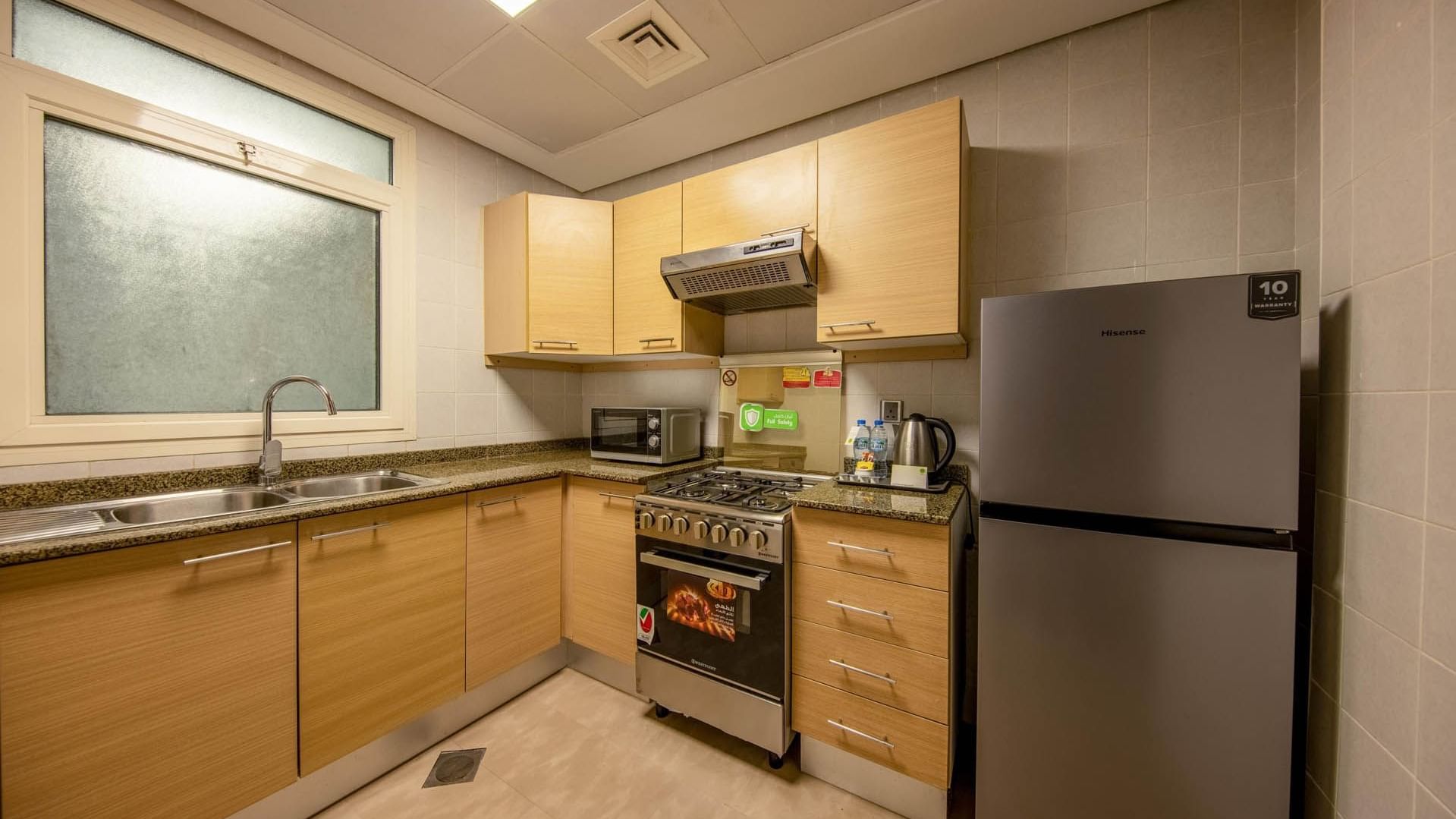 The apartment features a separate spacious living room with a large LCD TV and satellite channels, a dedicated dining area, and a fully equipped kitchen complete with a stove, oven, microwave, fridge freezer, electric kettle, and washer/dryer—ideal for both short visits and long-term stays. Stay in control of your comfort with individual temperature-controlled air conditioning, and enjoy seamless connectivity with complimentary high-speed Wi-Fi throughout the apartment.