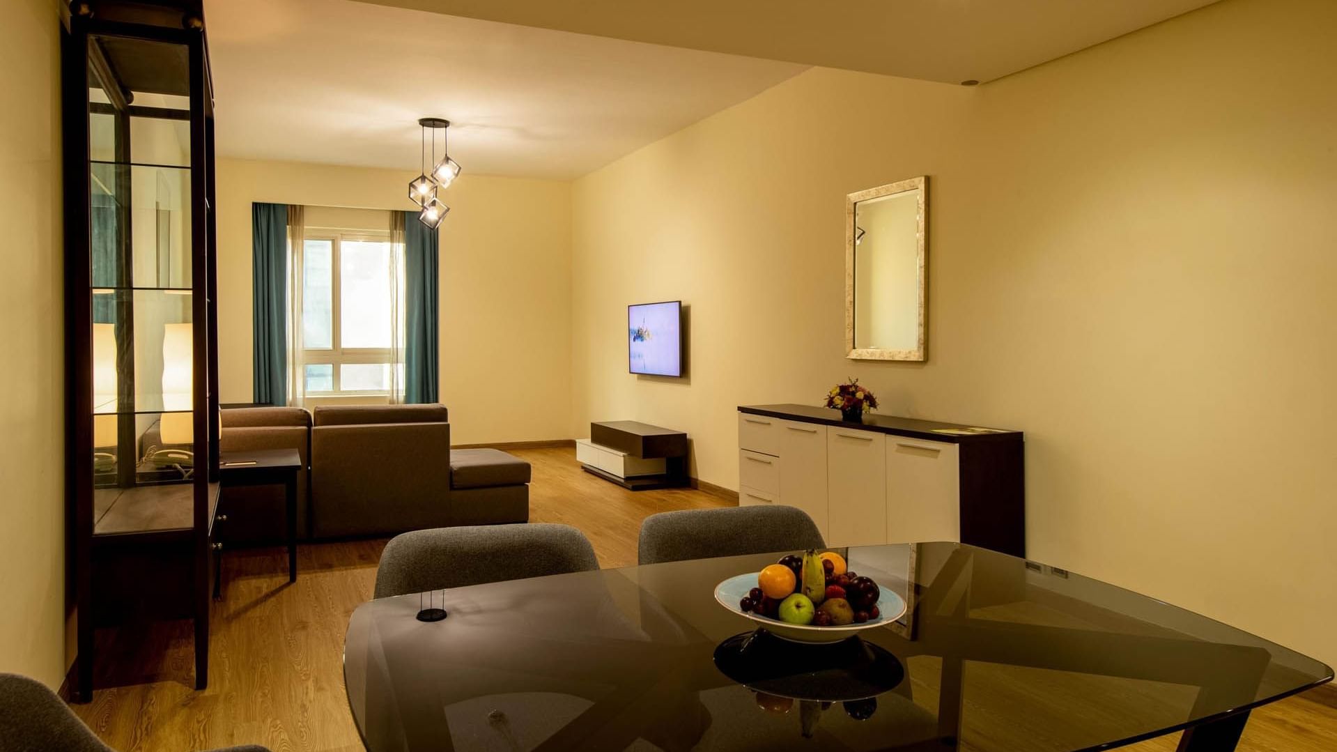 Designed for guests who value space, style, and comfort, our Premium Two Bedroom Apartment offers 120 sq. m of refined living with sweeping city views and a private balcony. Perfect for families, colleagues, or long-term travelers, this fully furnished apartment features a king-size master bedroom and a twin bedroom, combining modern luxury with home-like convenience.
